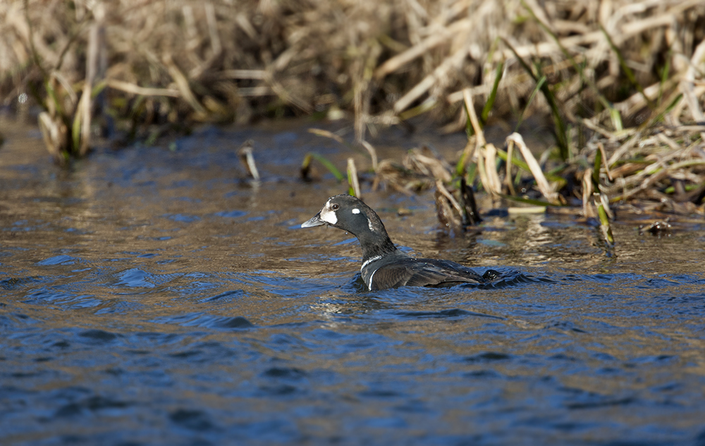 Spent the next few hours watching the Harlequin tease... prolonged periods round an inaccessible bend in the river and brief spells out in the sunshine...